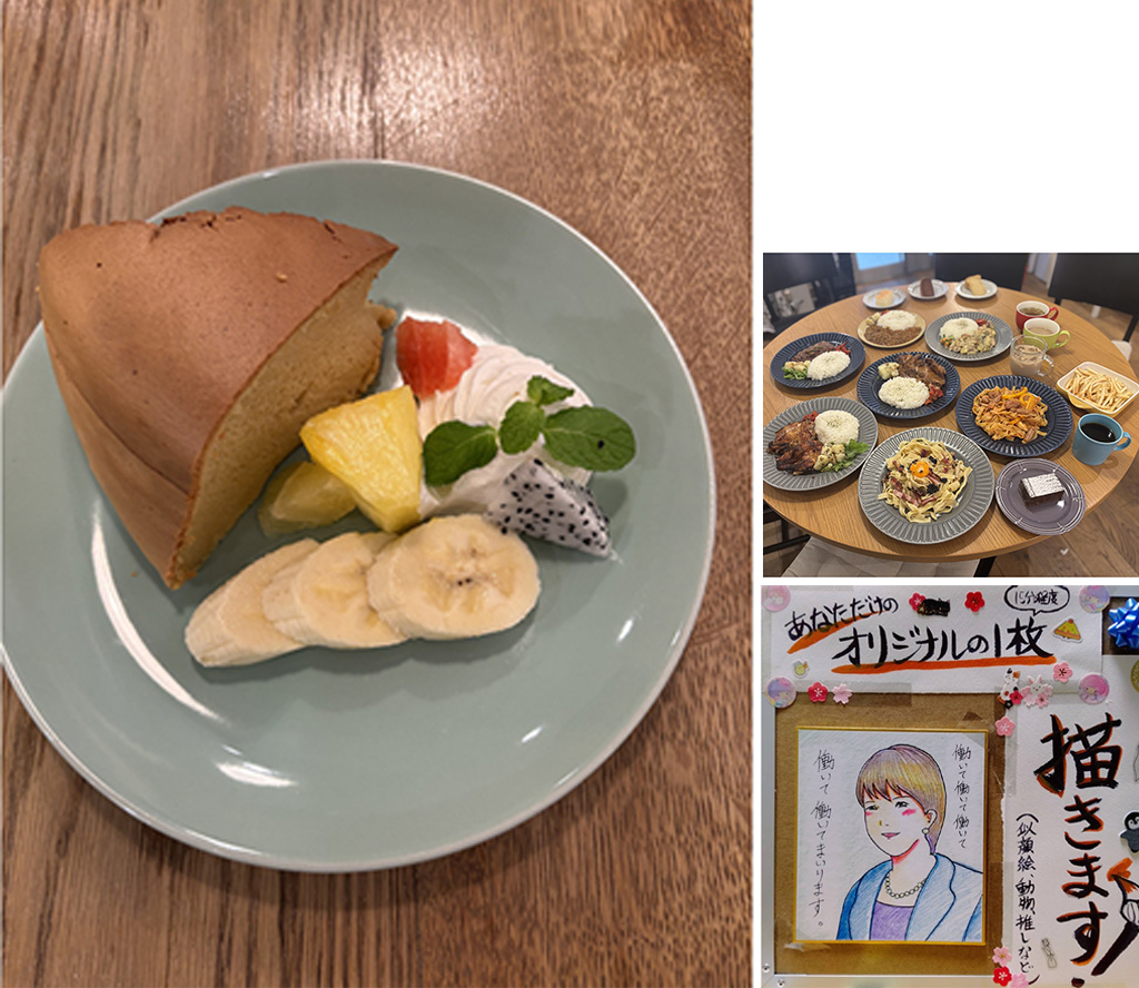 塩麴鳥のお弁当、米粉ケーキ、クッキー、珈琲販売、似顔絵体験